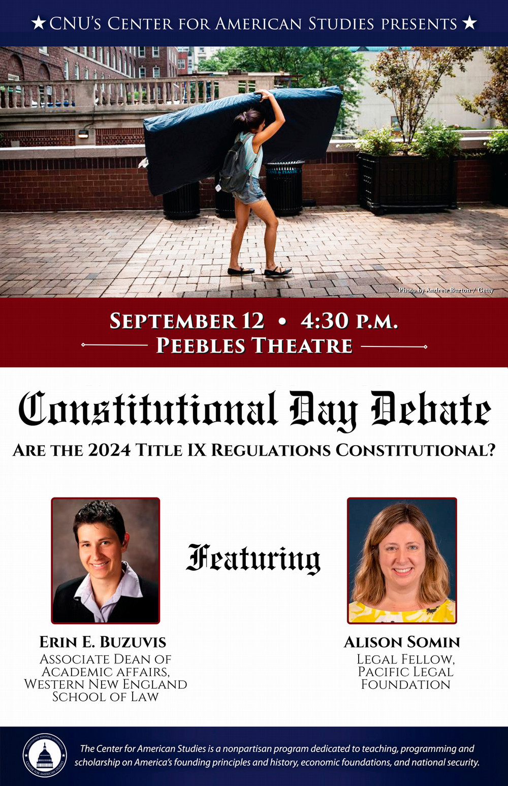 September 12, 2024 - A debate was hosted in Peebles Theatre by the CNU Center for American Studies and students, faculty and staff were welcome to attend.